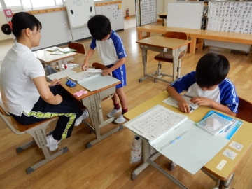 宿題のプリントを自分のファイルにきれいにとじること」3年生の2人には、ちょっと難しい。「どうしたい?」「どうしたらきれいにとじられる?」と声掛けし、失敗しても見守りながら。できなくてパニックになっても「だいじょうぶ。ちゃんとできるから」と励ましながら、ぶじに自分のファイルに、宿題プリントをとじることができました。よかったね。