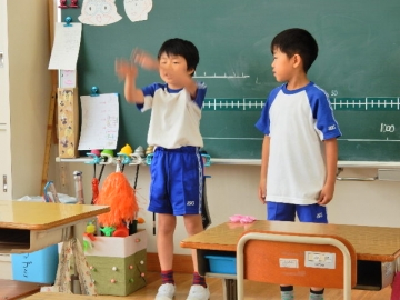 今日は、音楽の時に披露する予定の「おわらい」の練習をしていました。シナリオから考えて、4月からとりかかっていました。だいぶじょうずになってきました。