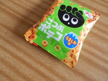 ポテコを口の先にくわえます。