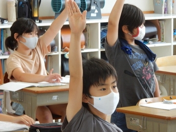 計算した「余り」の処理を考える文章題を解いていました。単純な計算に終わってしまっては、正解にたどり着くことができません。子どもたちのつぶやきが「分からん。」や「むずい…。」から「あっ、分かったかも。」や「そういうことか!」に変わっていく、観ていても心地が良い授業でした。