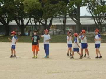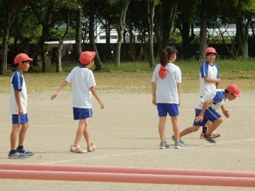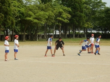 短距離走を行っていました。感染症対策のため、濃密な接触を避けることができない運動などは、可能な限り控えています。授業者は、暑い季節を迎え、水分を補給する時間を確保するなどの熱中症対策も講じていました。