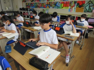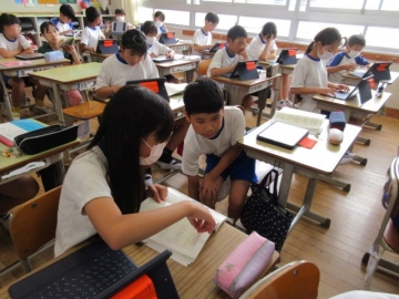 絵や写真も使って、それぞれがタブレットにまとめています。