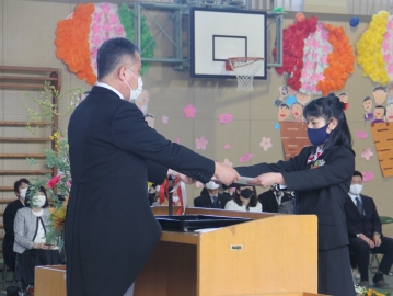 本年度の卒業証書授与式を挙行しました。今回は、未だに新型コロナウイルス感染症の流行が続いていることを踏まえ、参列者を6年の保護者の方々と5年の子どもたち、職員に限定して行いました。会場のレイアウトも変更し、内容も大幅に短縮しましたが、参列者の全員が子どもたちの門出を温かく祝いました。素晴らしい「かんべっ子」の子どもたちでした。