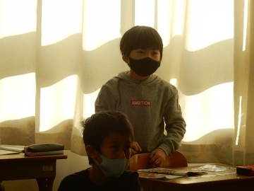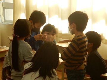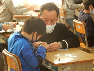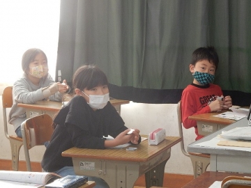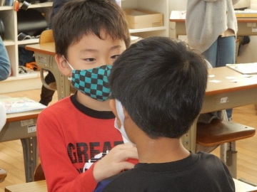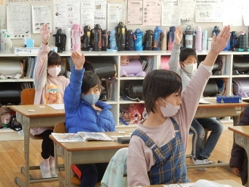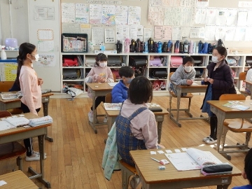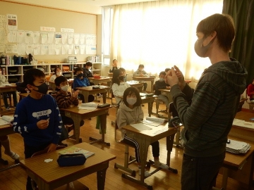 3年の子どもたちが、アルファベットの大文字カードを使ったゲームを行っていました。ALTのジョーダン・ドリーボさんに来ていただいた時は、いつも以上にたくさんの英語が飛び交います。今日も、大盛り上がりの楽しい授業でした。