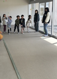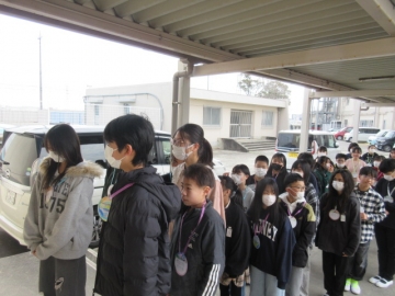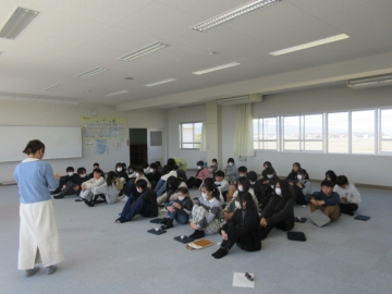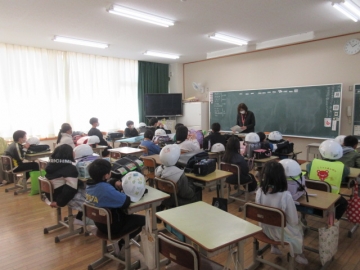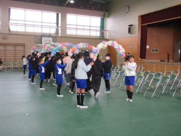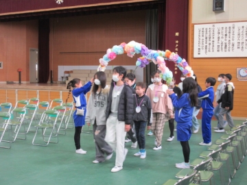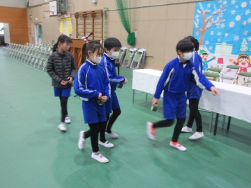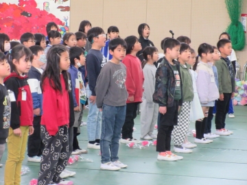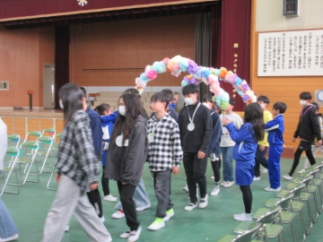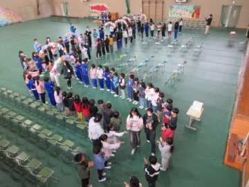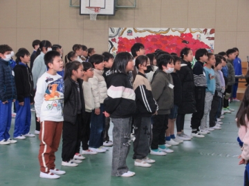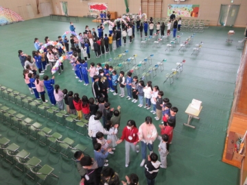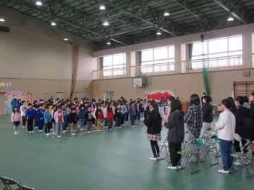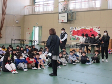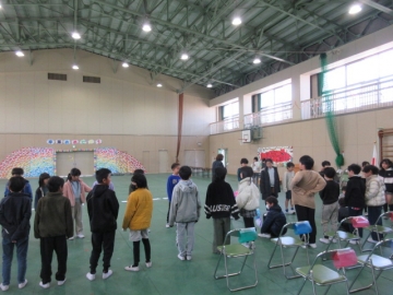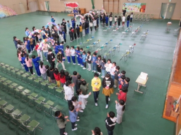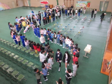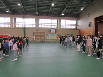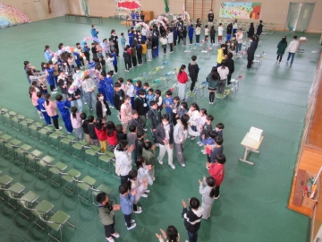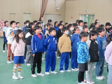 全校児童が体育館に集まりました。