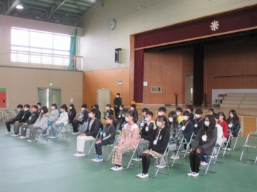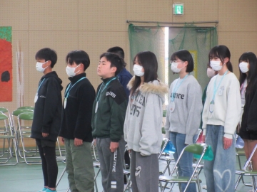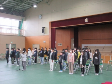 【校内書写展入選】 入選者は、名前を呼ばれたら立ちます。