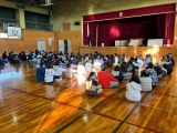 「おはようございます」6時15分起床。(早くに起きて部屋を片付けている子もいました)着替え、歯磨き、洗顔を終え、7時15分に朝食会場に移動しました。朝から食欲旺盛な姿も見られました。