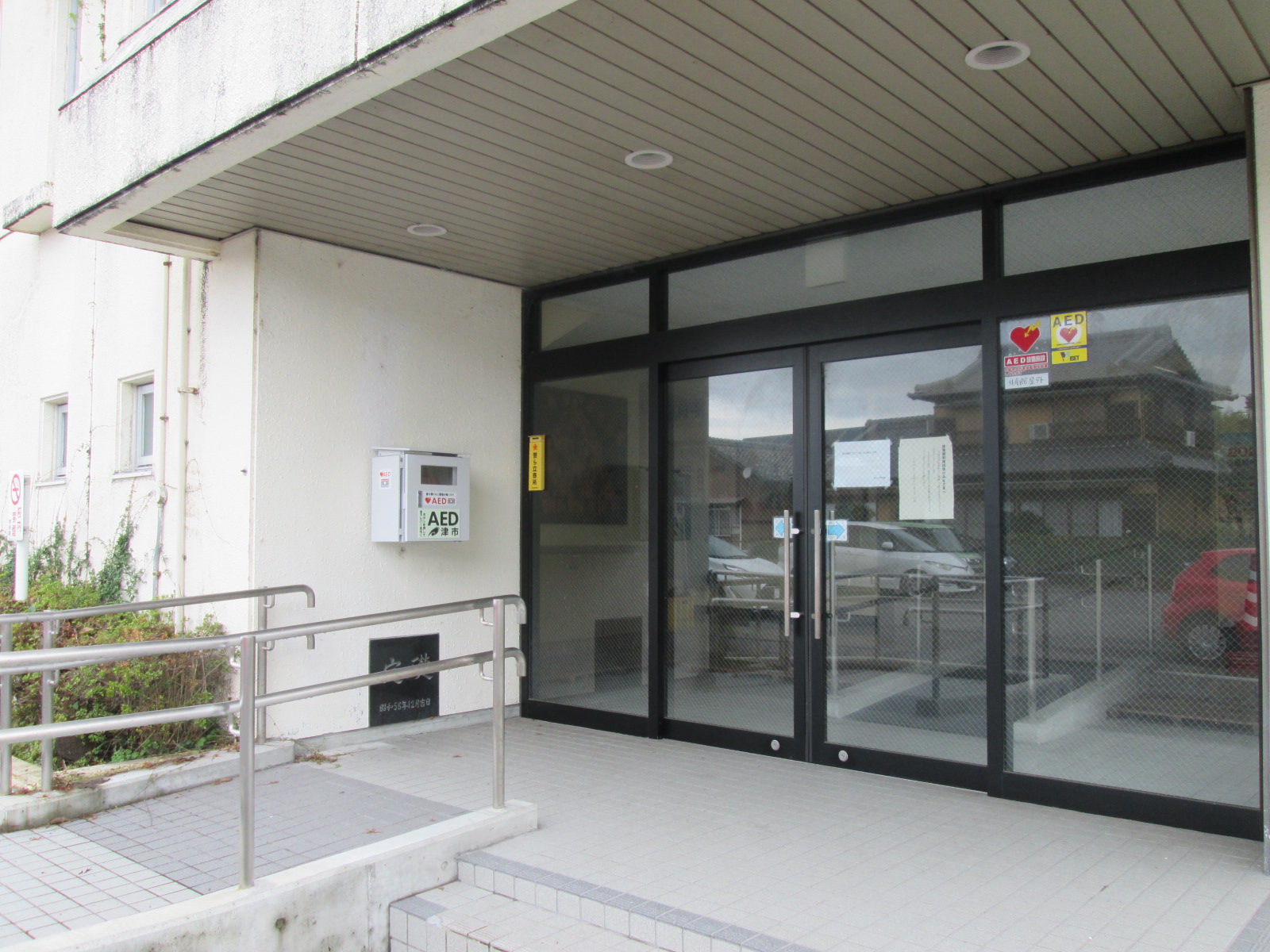 AED(自動体外式除細動器)が屋外配置になりました。場所は、黒田小体育館玄関横になります。非常時には大きな音が鳴りますが、扉を開けてご使用ください。