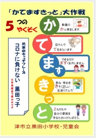 三重県にコロナ感染防止の為の「緊急警戒宣言」が出されて、黒田小学校でもいつも以上に感染対策をがんばっています。そんな中、児童会役員がキャッチフレーズを考えてくれました。