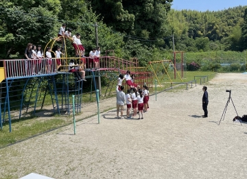 津市の企業と津市出身の写真家 浅田政志さんが「サプライズ花火プロジェクト」で黒田小学校に来校されました。子どもたちが考えデザインした「花火をモチーフにした全校写真」を浅田さんが屋上から撮影するというイベントです。