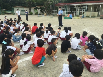 9月18日(金)に津警察生活安全課と連携して、不審者訓練をおこないました。3年生の教室に不審者が侵入したという設定で、安全に素早く避難するにはどうすればいいかを考えながらの訓練でした。