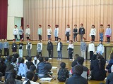 中学校区の小中学校特別支援学級の子どもたちが朝陽中学校の体育館に集まり、