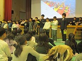 第1部の式典では、はじめに会場の参加者全員で校歌を斉唱しました。