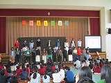 6年生の発表、全員での合唱などが行われました。