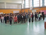 校歌斉唱、学校長の話、生徒指導担当の話、入学式の呼びかけの練習などを行いました。