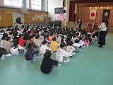 学校長の話の中で、犠牲者追悼の黙とうを行いました。