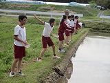 子どもたちは裸足で泥の中に入り、歓声をあげながら活動が始まりました。