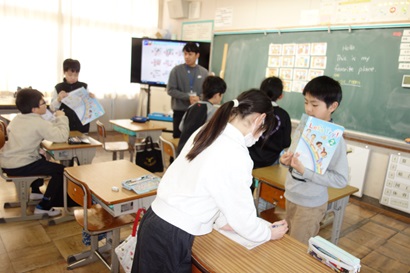 3年生の理科の授業で、磁石の学習をした後に、磁石の性質を使って魚釣りをする準備をしていました。授業の最後のお楽しみです。