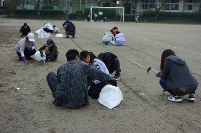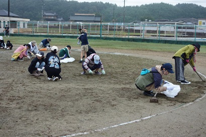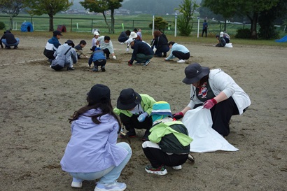 見守り隊のみなさまと全校児童が運動場の草取りを行いました。見守り隊のみなさまには、登校の見守り活動に引き続き、草取りをしていただきました。おかげさまで草取りが随分はかどりました。ありがとうございました。