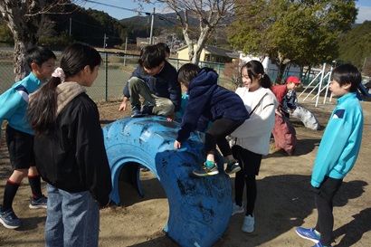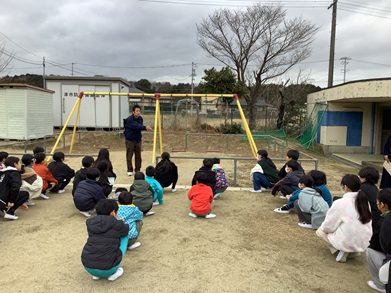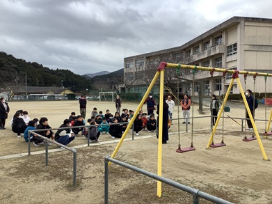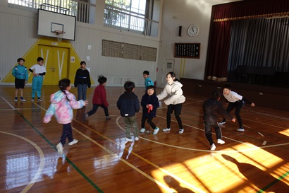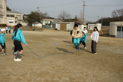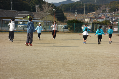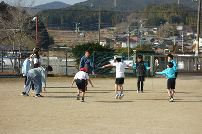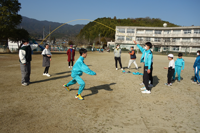 先週より、なわとび週間(1/26まで)として、業間になわとび運動を実施しています。たてわり班ごとに集まって、短なわとびをした後、大なわをします。短なわは自分のめあて、大なわはたてわり班のめあてが達成できるようがんばっています。