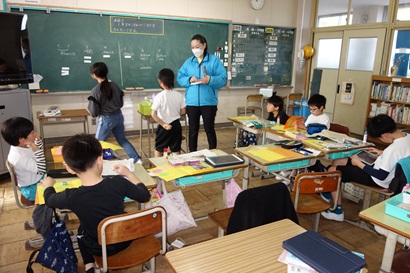 と一緒に英語の勉強です。どのクラスも楽しそうに学んでいます。