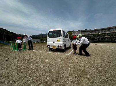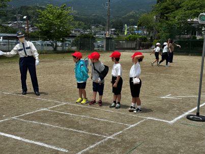 交通安全プロバイダーの方から、安全に登下校するために、交通安全教室で、正しい横断歩道の渡り方や道路の歩き方を学びました。また、草生小学校の交通安全父母の会の会長さんにもご協力いただき、実際に歩行訓練も行いました。子どもたちは、これからの登下校に生かしていこうと話していました。