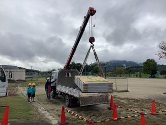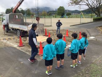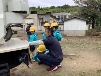 10月15日(水)に、地域の方に高所作業車とクレーン付きトラックのことを教えてもらいました。