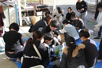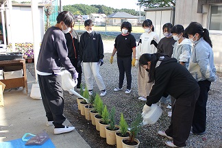 今日はお家の方と一緒に木を植えました。木に飾りつけをして、かわいいクリスマスツリーになりました。6年生の時に植えた思い出の木になると思います。