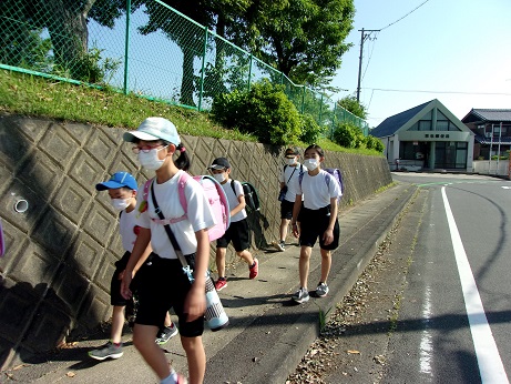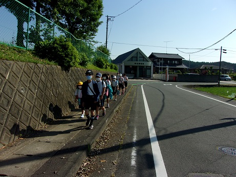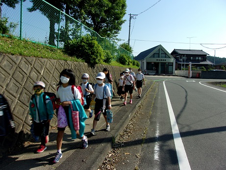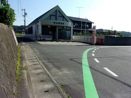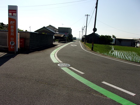 生水の交差点から郵便局前までの通学路にグリーンベルトを塗っていただきました。白線の内側、緑色のところを安全に気を付けて歩きましょう。