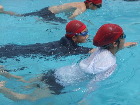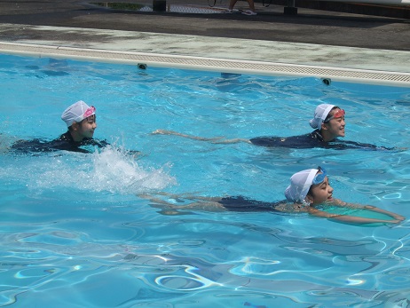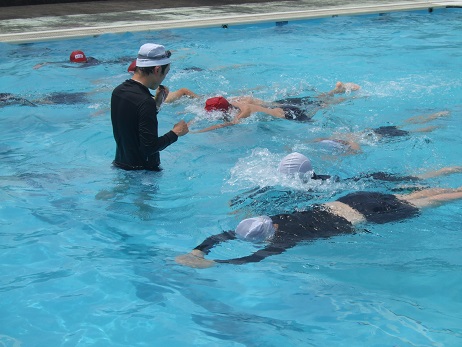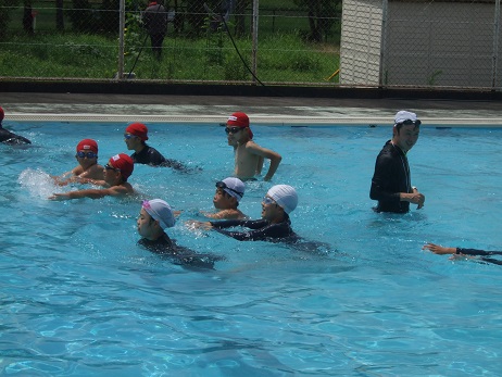 今日の水泳は、3・4限目5・6年生、5・6限目3・4年生でした。5・6年生はプール開きの日、午前中雨で入水できず、今日で2回目の水泳でした。3・4年生は予定通り入水できているので、3回目です。水にも慣れて、伏し浮き、バタ足、息継ぎなど、ペアになったりグループに分かれたりしながら取り組んでいます。 ※5・6年生の様子です↓