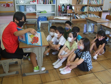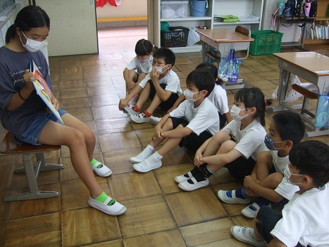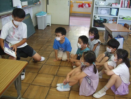 年生に給食の配膳や掃除の仕方を教たり、読み聞かせをしたりしていました。ほかにも学校生活においていろいろお世話になったということで、今日は