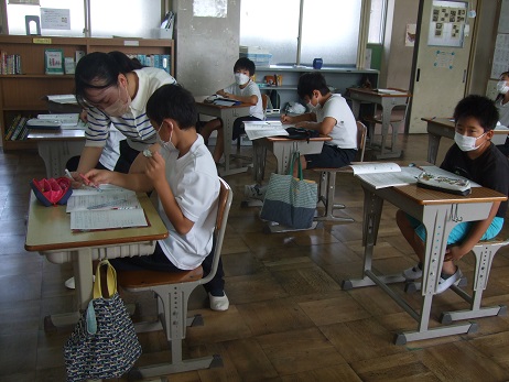9月1日から4週間、教育実習生(1名)が本校で学んでいます。これまでに大学で学んできたことを実際の教育現場で実践し、経験を積んでいきます。主に4年生で学んでいますが、いろいろな学年の子どもたちと積極的に触れ合って、学びを深めてほしいです。将来はぜひ、先生となって学校に戻って来てくれることと期待しています。※算数の授業 4年教室にて 実際に授業をするのは2回目です。落ち着いて取り組めていました!