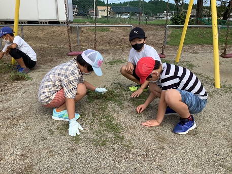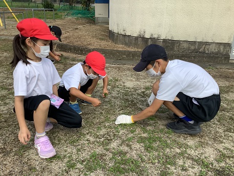学校をきれいにすることができました。これまでも各学年で、生活、理科、学活、総合、掃除の時間などに草抜きや落ち葉の掃除などをしています。今後、見守り隊の方との草抜きや