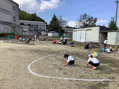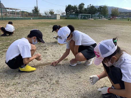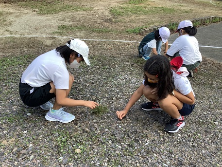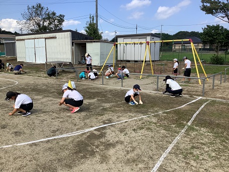 児童会活動として、縦割り班で環境整備作業(運動場草抜き)を行いました。児童会が決めた場所の草を各班に分かれて抜きました。掃除の時間からぐんぐんタイムの30分間、みんなで草抜きをして