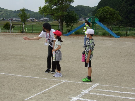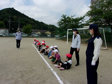 視聴の後、運動場で歩行練習をしました。3~6年生は、10時25分から体育館で自転車の乗り方についての講話と