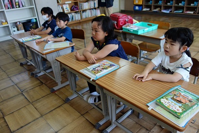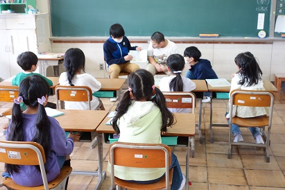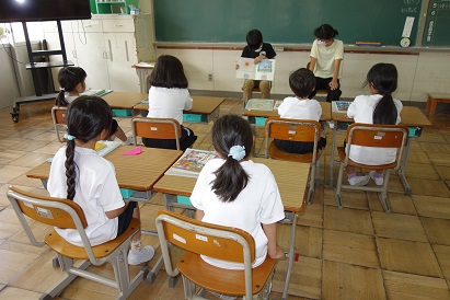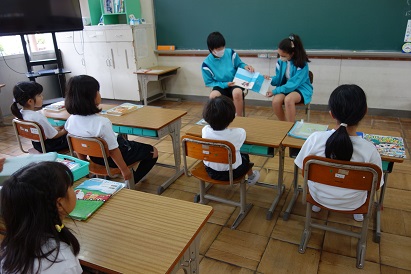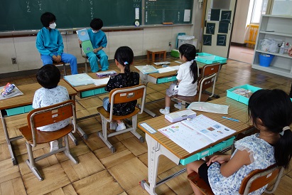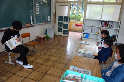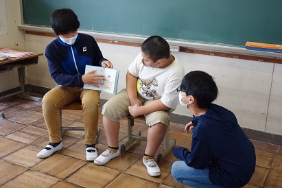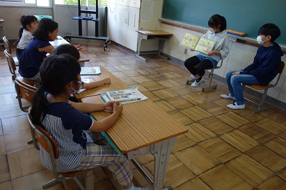朝の読書に時間に、6年生が1年生に読み聞かせをしてくれています。「今日はどんなお話かな」毎回ドキドキワクワク楽しみですね。