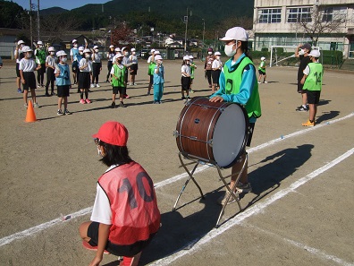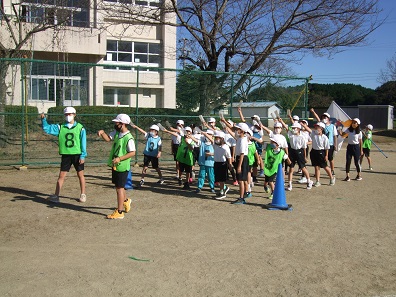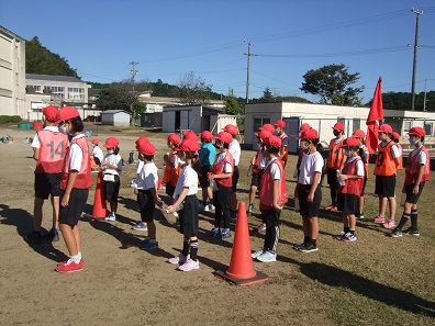 運動会まで1週間余りとなり、練習にも精が出ます。今日の1限目は全校児童が、応援合戦と全校リレーの練習をしました。応援合戦の練習は、入場から応援、そして退場まで運動場で実際にやってみました。秋晴れの空のもと本番さながら元気よく応援できました。一生懸命応援する姿はかっこいいです!全校リレーは、各班で作戦をたてたり準備体操をしたりて、チームワークを高めました。そのあと実際に班別対抗でリレーを行い、各班のタイムを計測しました。「速さをつなごう!全校リレー」の名の通り、どうすれば速さがつながるか考え取り組んでいます。今日、走ってみて気づいたこと、改善点などあると思います。一人ひとりの気づき、班のメンバーとの振り返りを次の練習に活かし、本番では最高の速さがつなげられるといいですね。
