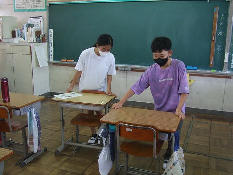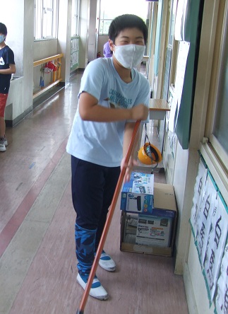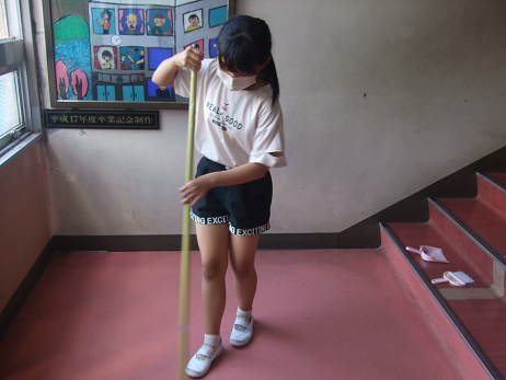 草生小学校の掃除は、少人数で教室、廊下、手洗い場、トイレ、階段、特別教室などをしています。人数が少ないからか、みんなとても手際よく仕事をこなしていました。早くできた人は、まだのところを手伝うなど協力体制ばっちりです。何より笑顔で楽しそうでした。(