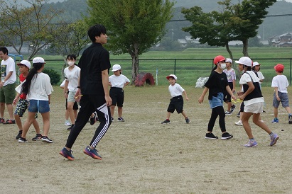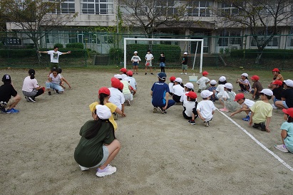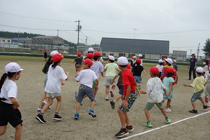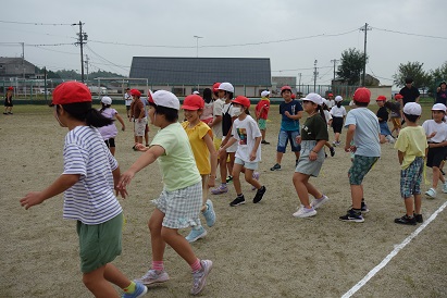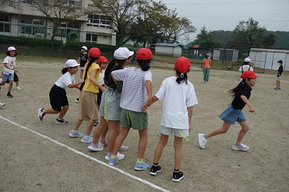 全校児童でした。どちらのチームもしっぽをとったりとられたり、楽しく元気に遊ぶことができました。