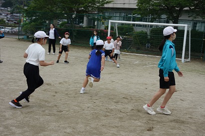 先週から雨で延期になっていた全校遊びを行うことができました。今日の遊びは「ケイドロ」(おにごっこ) 警察役(おに)は児童会役員、6年生、先生たちで、泥棒役はそれ以外の子どもたちでした。みんなで楽しく元気に遊ぶことができました。全校でこんなふうに遊べるところが草生小学校のいいところです。