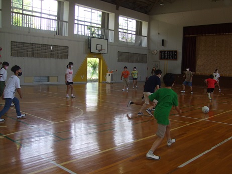 今日も暑さ指数が高かったので、外遊びを中止とし、業間は体育館を開放しました。割り当ては5・6年生。みんなでドッチボールをしました。高学年だけあって、迫力満点!
