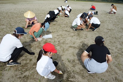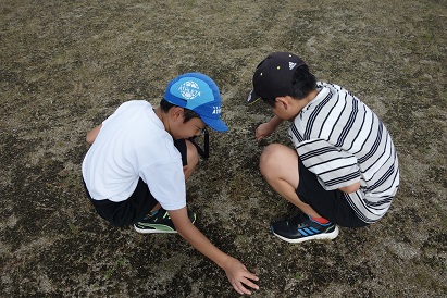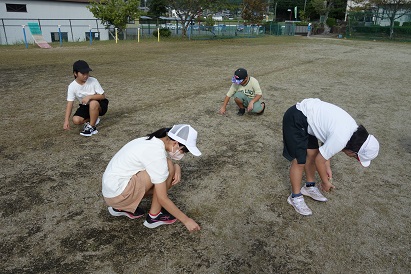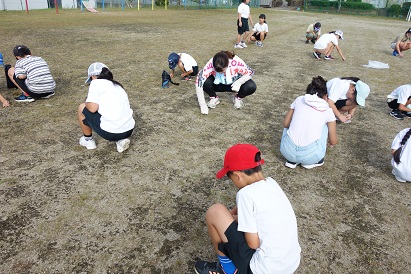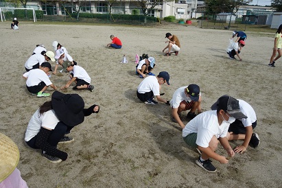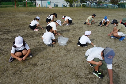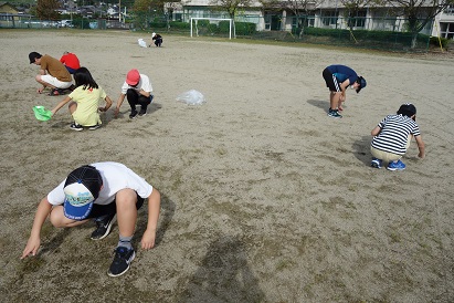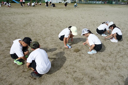 8時20分から35分まで全校で運動場の草抜きをしました。縦割り班にわかれて、分担されたところの草を抜きました。15分間、子どもたちと教職員の力を合わせてがんばりました。みんなの力で運動場が少しずつきれいになってきています。