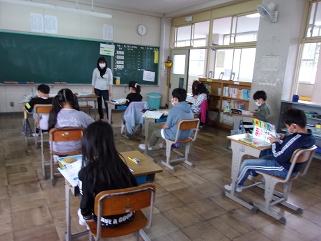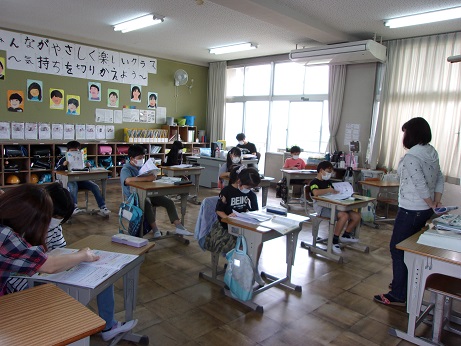 今年度、草生小学校に新しく来られた先生の授業の様子です。