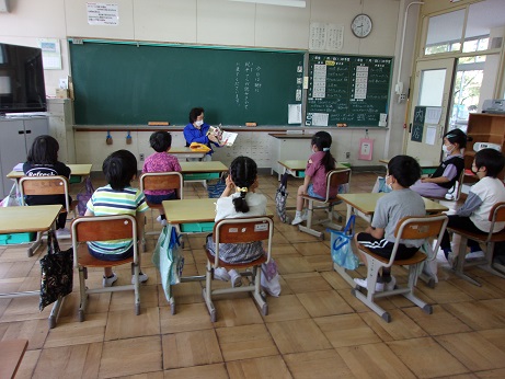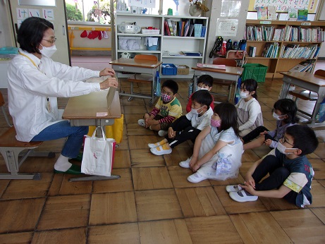 年生に来ていただきました。子どもたちは読み聞かせが大好きです。すうっとお話の世界に引き込まれている様子でした。紀平貞子様、中山孝子様、お世話になりました。ありがとうございました。