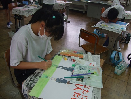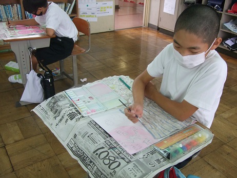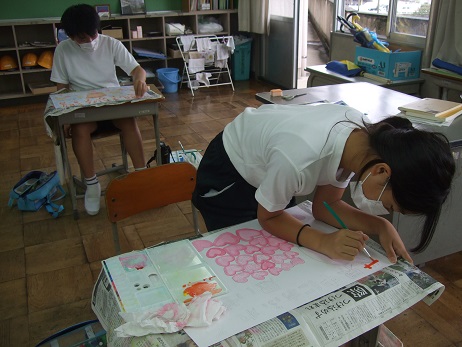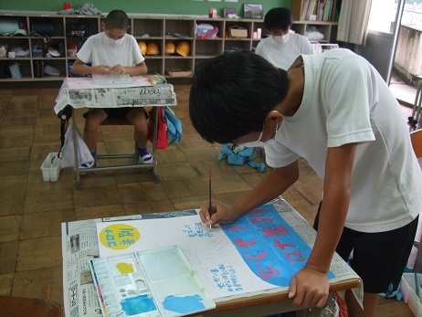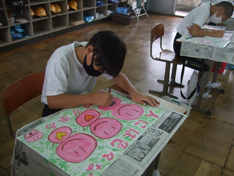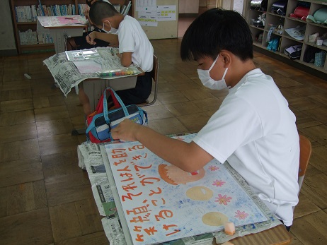 人権ポスターの制作に取り組んでいます。そのポスターに込める思いがよりよく伝わるよう、絵や文字の色、塗り方などにもこだわって仕上げていました。出来上がりが楽しみです。