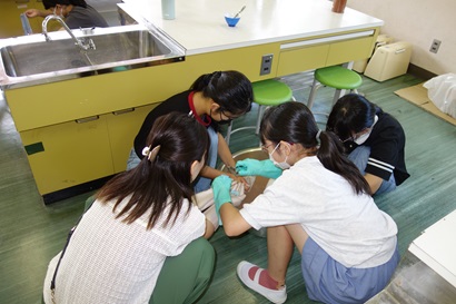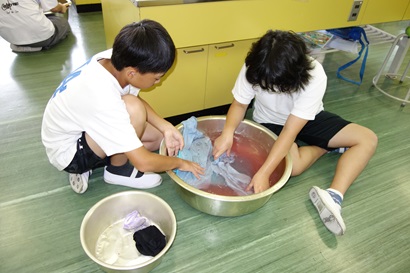 6年生が家庭科の授業で、洗濯の手順について学び、実際に手洗いに挑戦しました。汚れが落ちるよう一生懸命洗っていました。今後、自分の生活に活かしてほしいと思います。