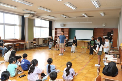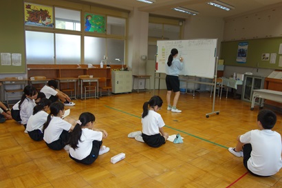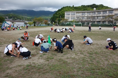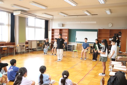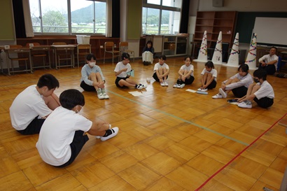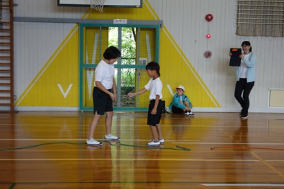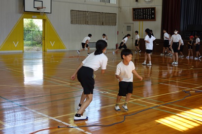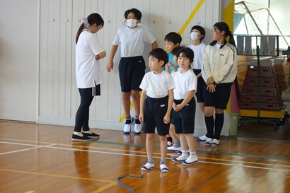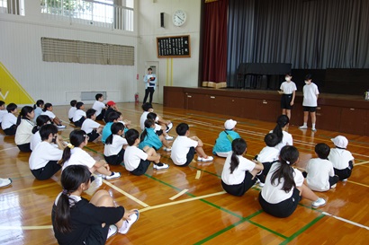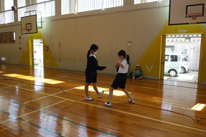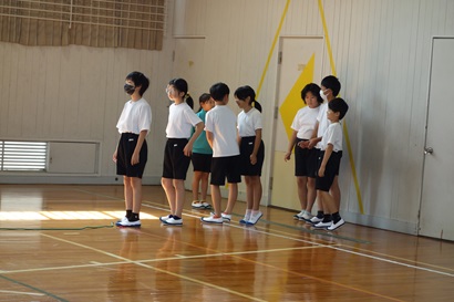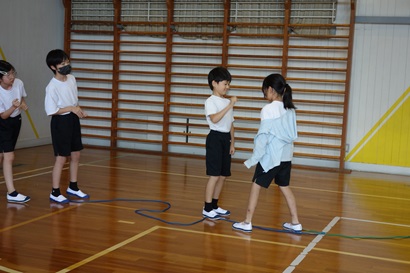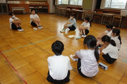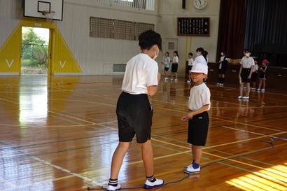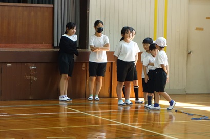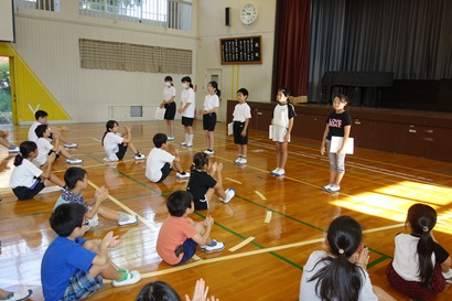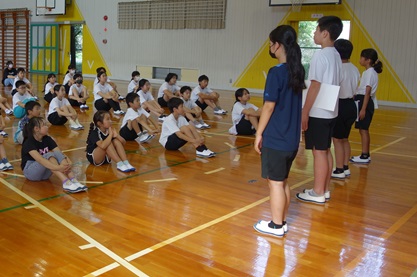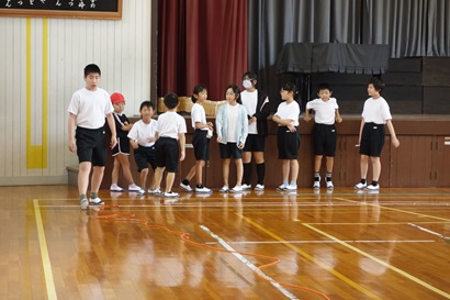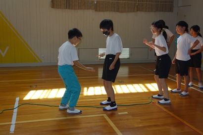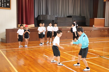 前期最後の全校遊びは、ヘビジャンケンでした。たてわり班対抗で、勝ったり負けたり、楽しく元気に遊ぶことができました。前期児童会役員のみなさん、ありがとう!