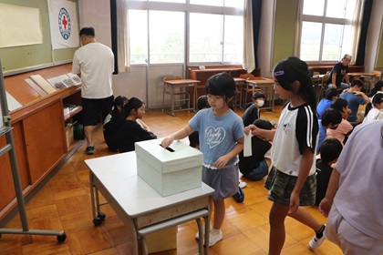 後期児童会役員選挙が行われました。立ち合い演説会では、立候補者一人ひとりの演説や公約に、学校をよりよくしていきたいという想いがあふれていました。前期児童会活動に続いて、後期児童会活動にも大いに期待しています。