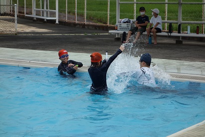 今日は、午後から雨が降る予報だったので、5・6年生は5・6限目の水泳の予定を1・2限目に変更し、今年度初の水泳の授業を実施することができました。水慣れしたあと、泳力を図ったり、自由時間を楽しんだりしました。3・4限目は、3・4年生が2回目の水泳を実施しました。明日は、3・4限目に1・2年生が小プールで、3・4年生が大プールで水泳を行う予定です。入水できる天気になりますように。