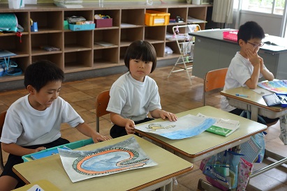 2年生が、「スイミー」の音読劇に取り組んでいます。何も見ないでしっかり読めるようになりました。今日は3年生に、今後ほかの学年にもきいてもらう予定だそうです。